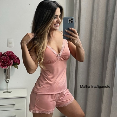 • Pijama alcinha feminino adulto em liganete (Malha fria)