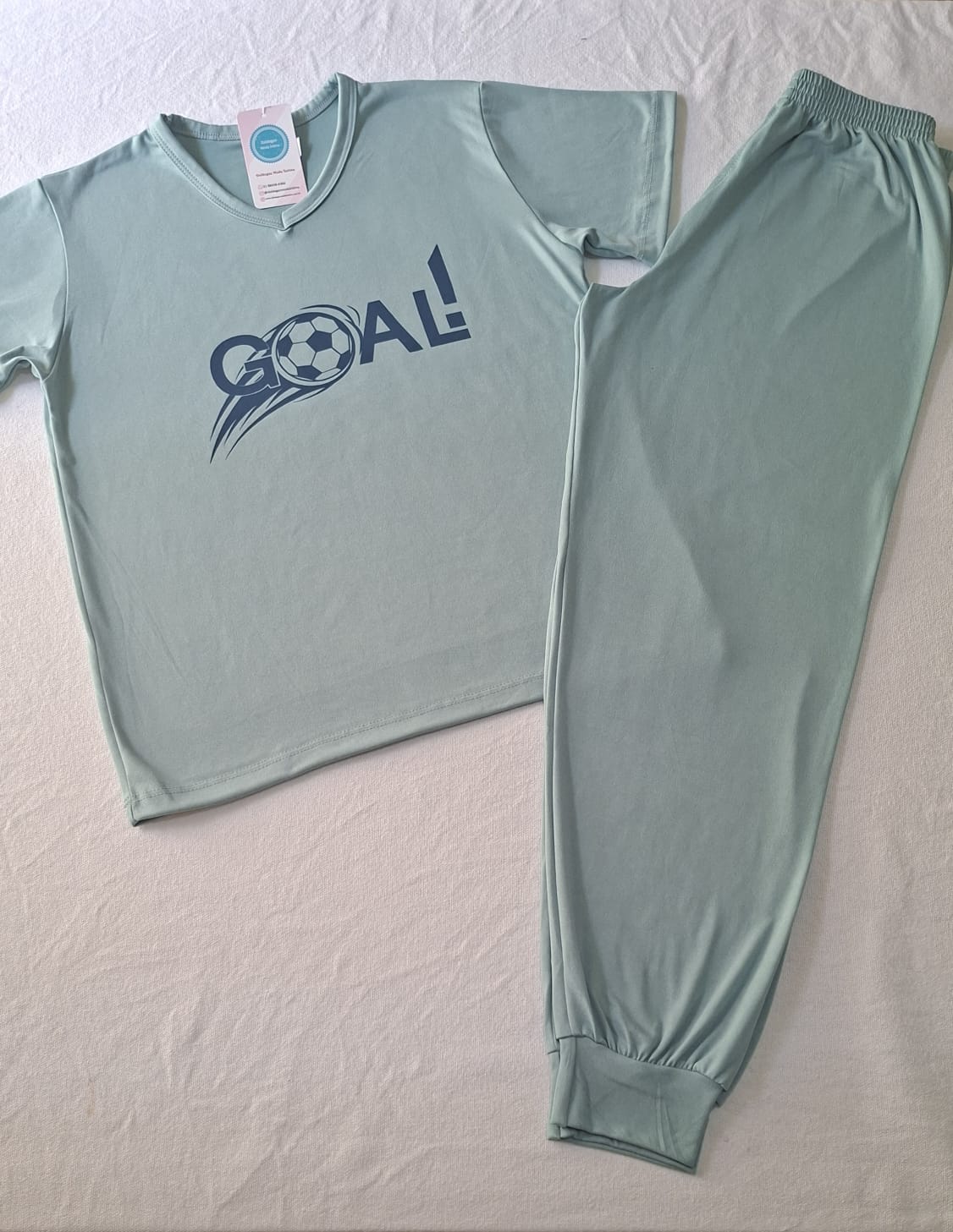 Pijama infantil manga curta e calça, confeccionado em Suede. Tecido macio e confortável.