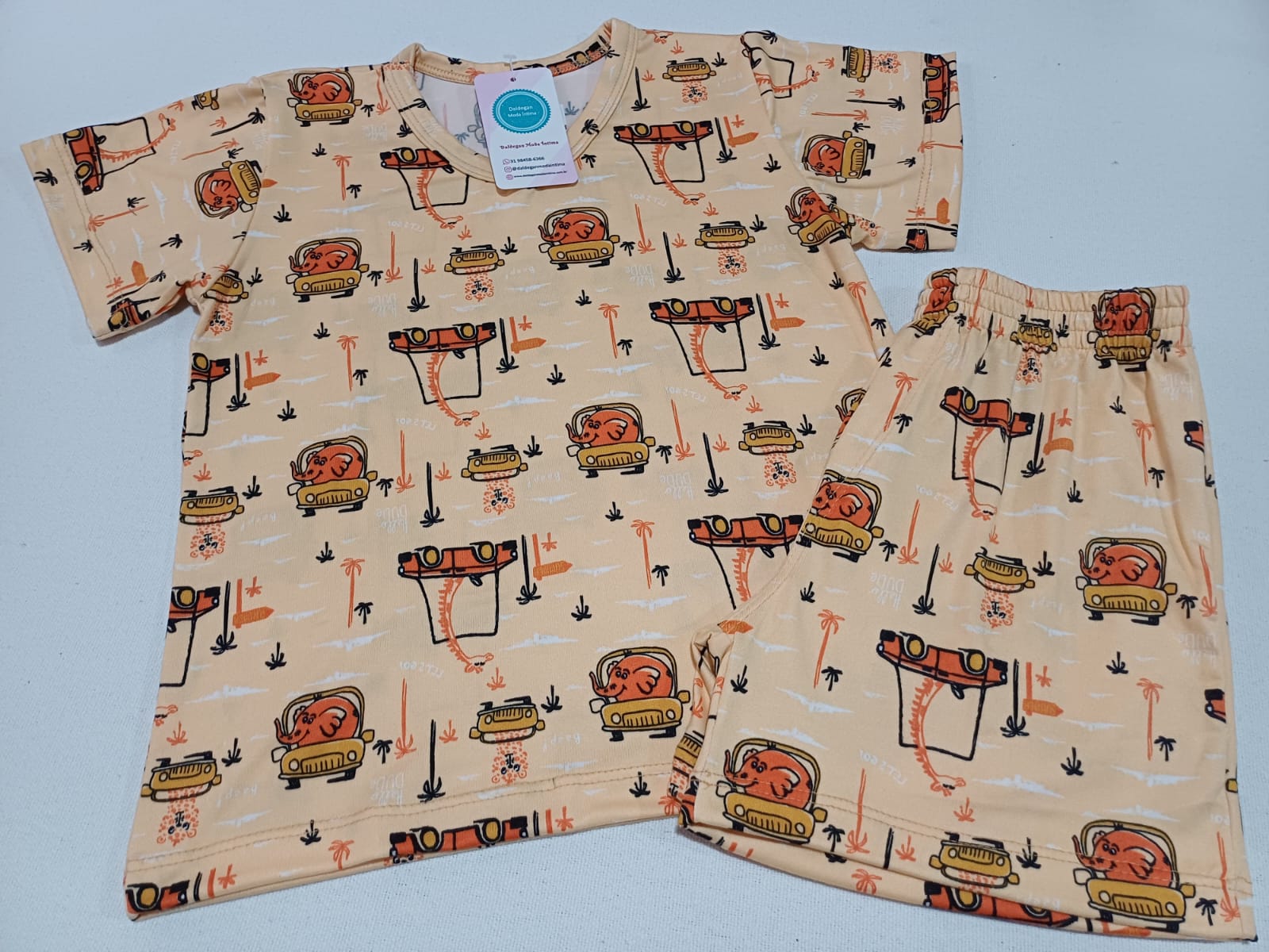 Pijama infantil manga curta e short, confeccionado em suede. Tecido macio e confortável.